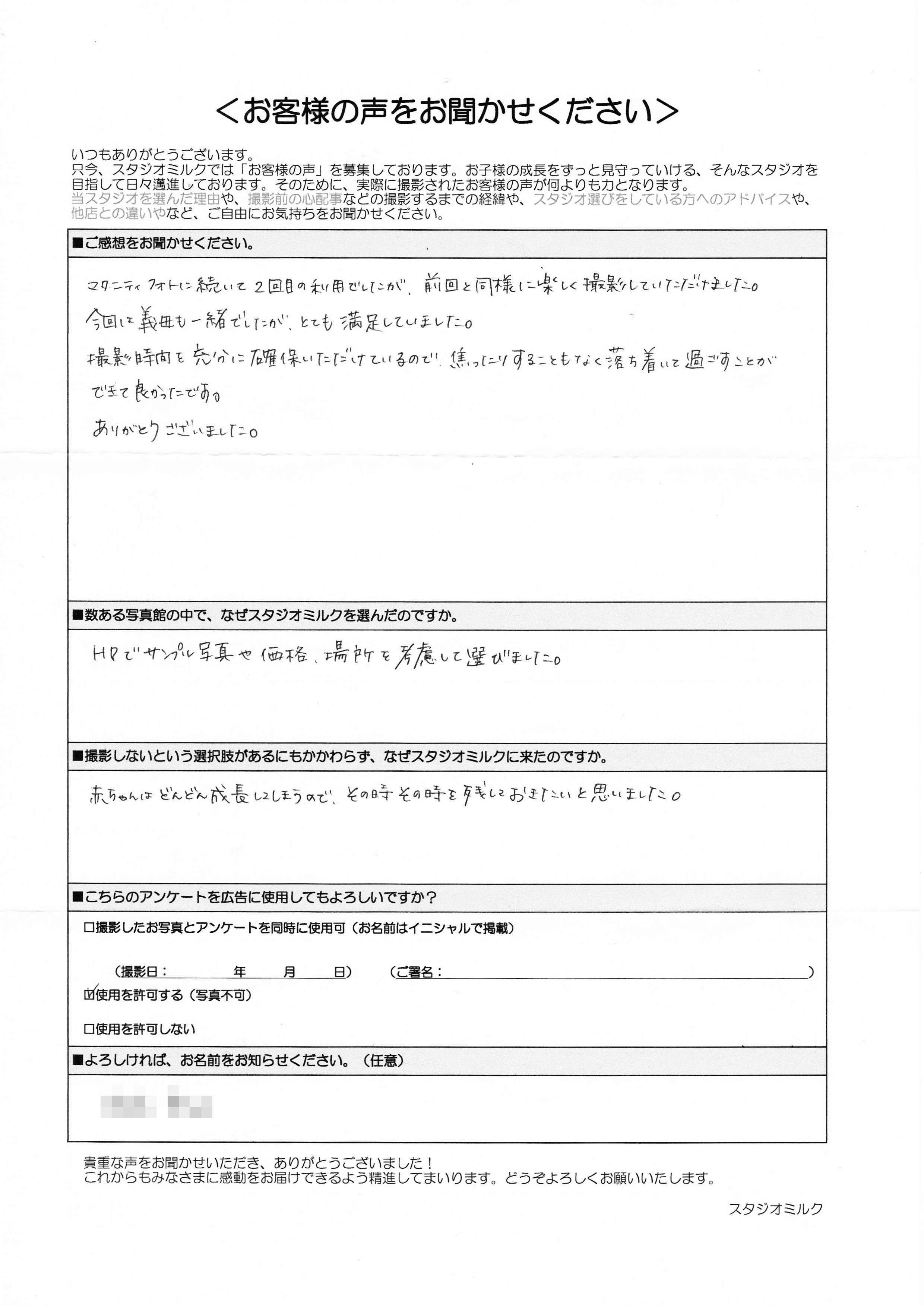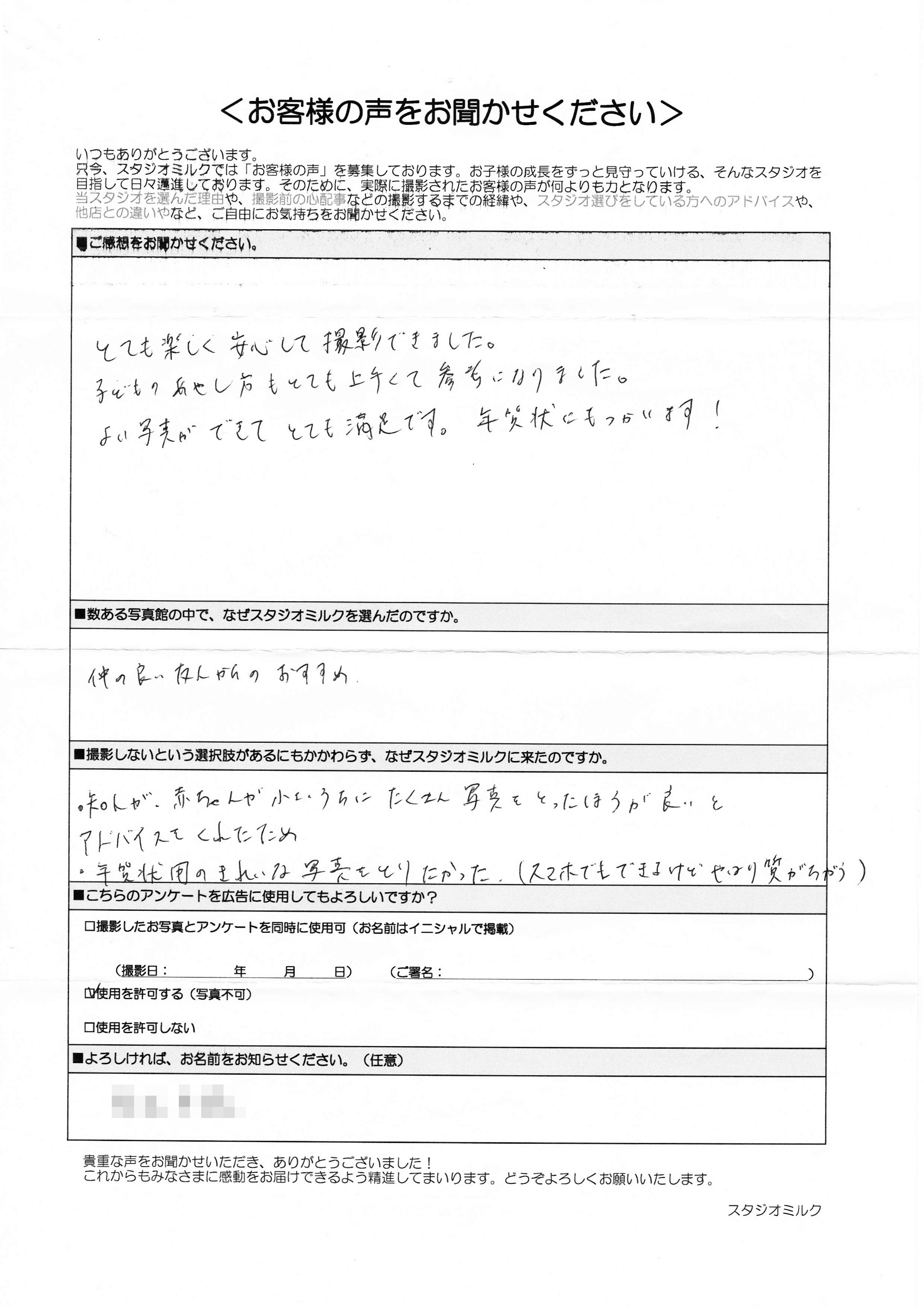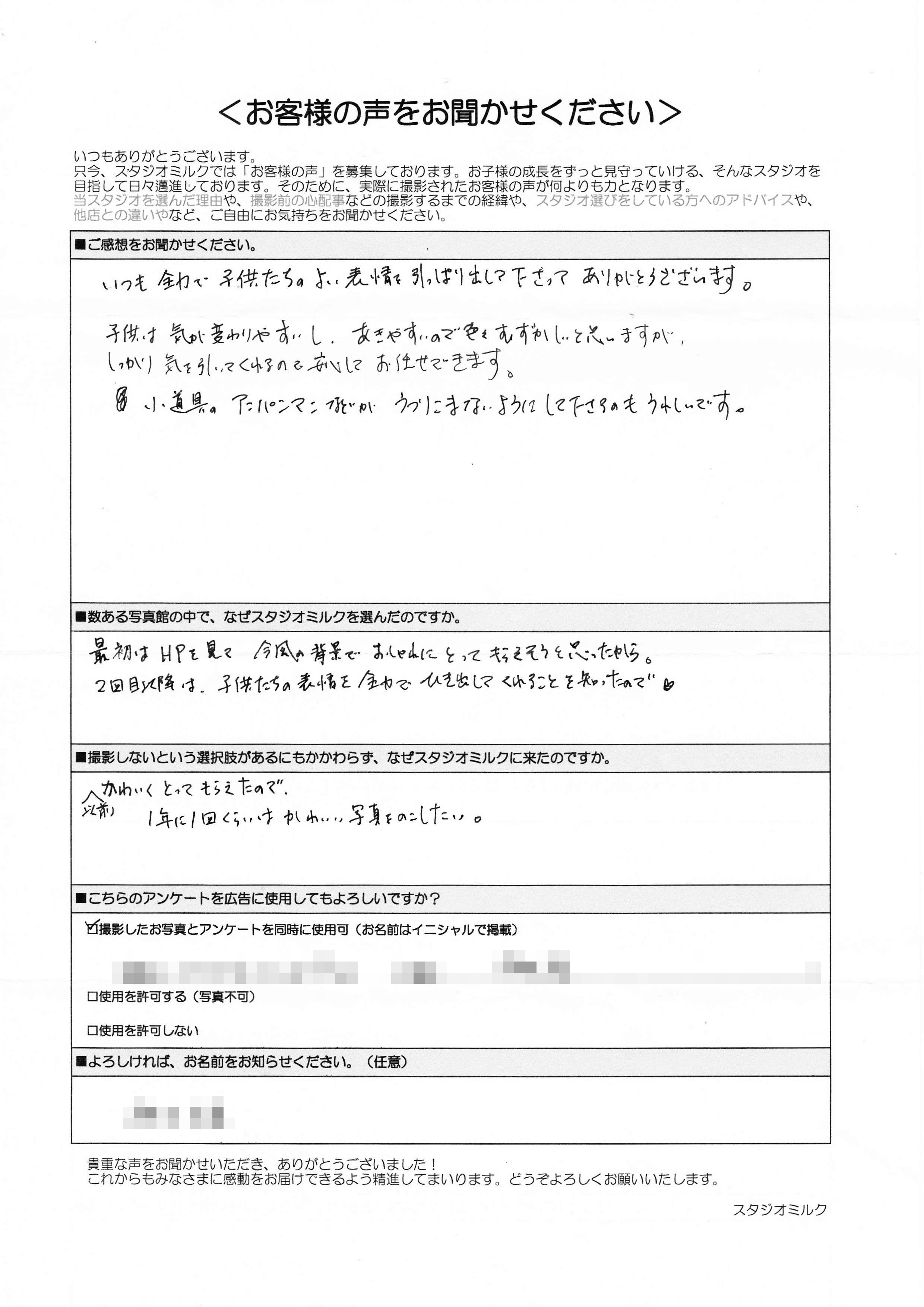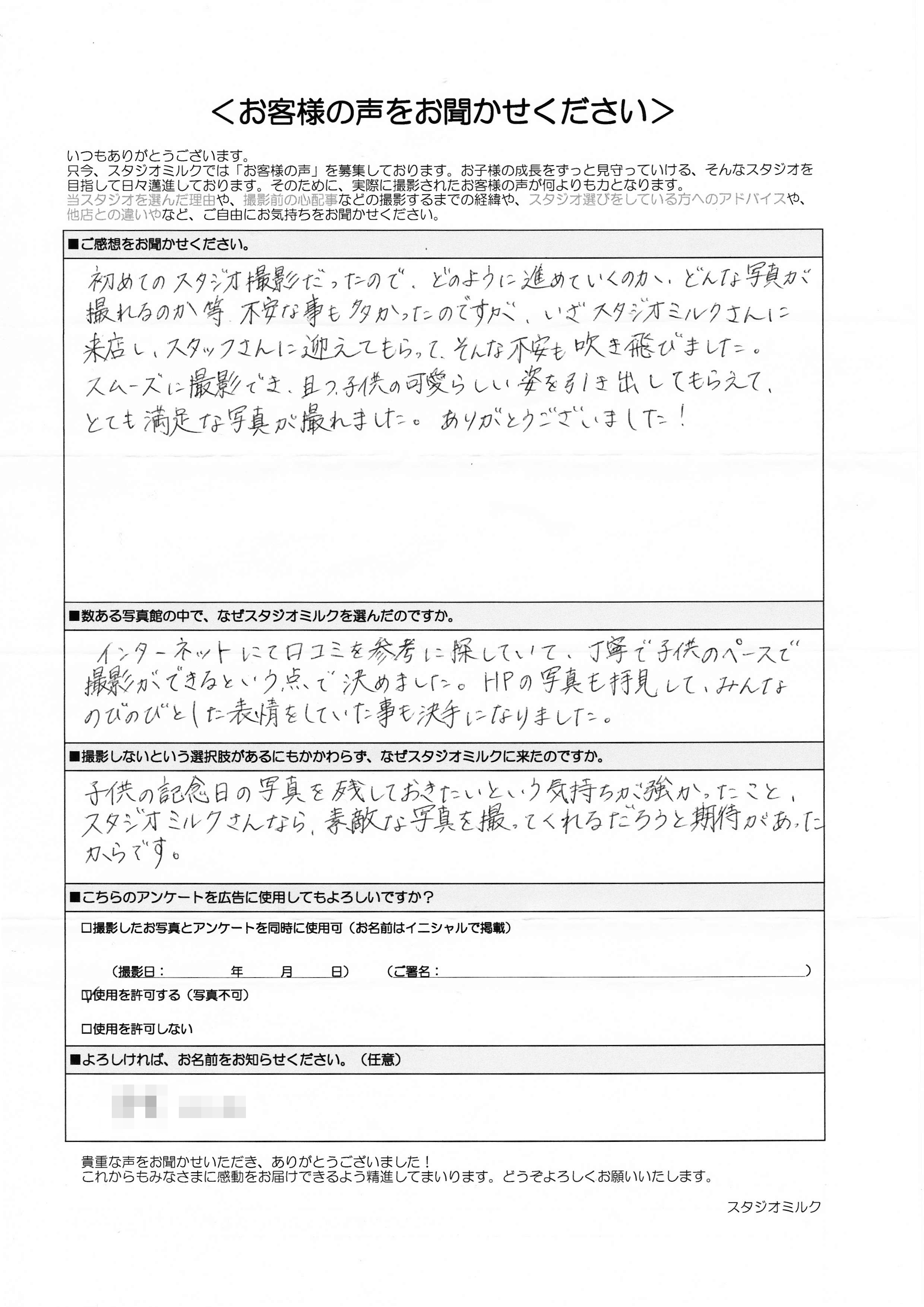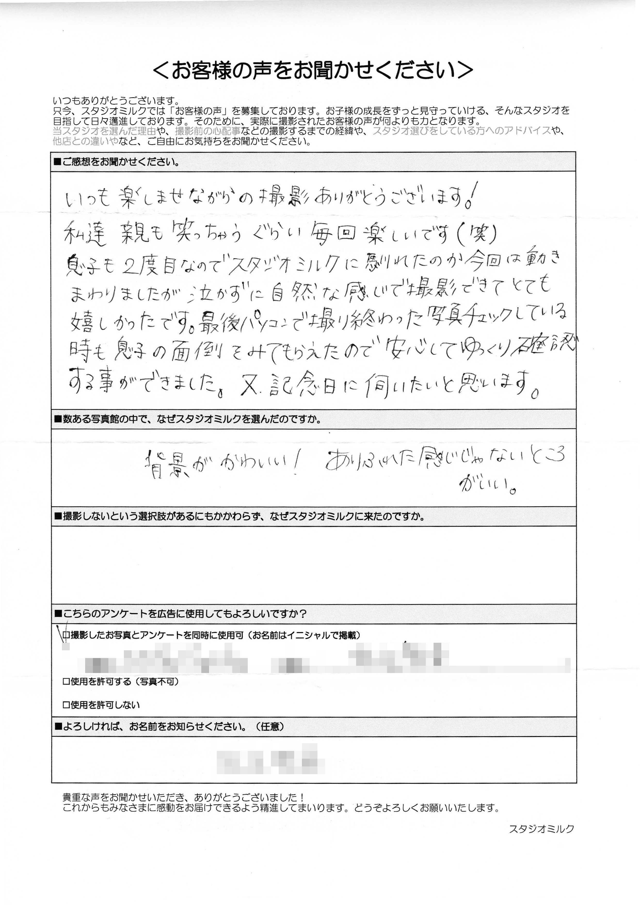 ■数ある写真館の中で、なぜスタジオミルクを選んだのですか。