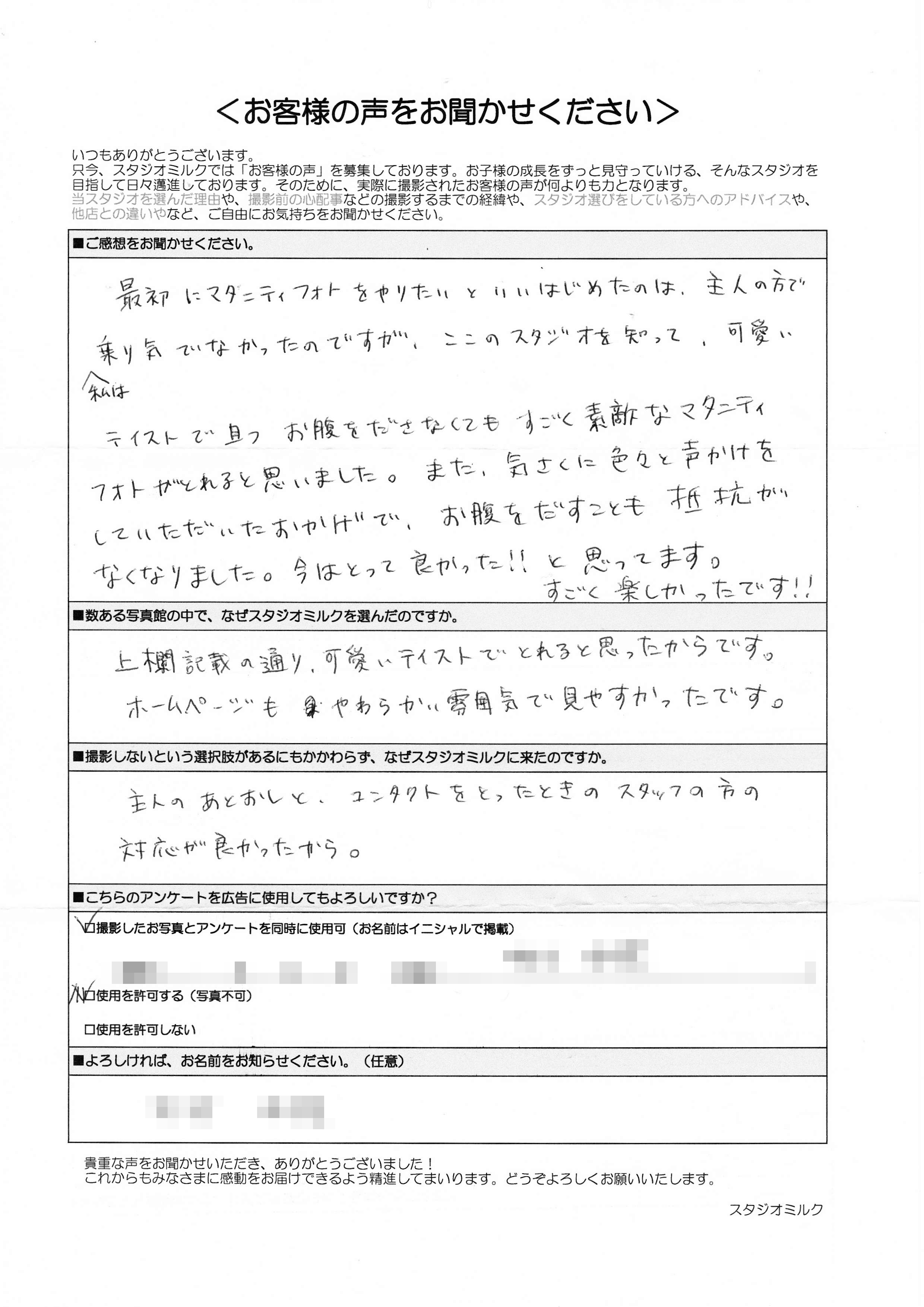 U.M.様、アンケートへのご協力、ありがとうございました!