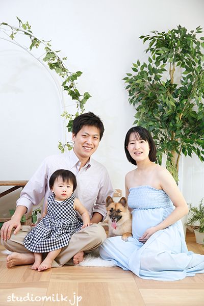 【朝フォト!】ご家族でマタニティフォト!ペットちゃんも一緒に撮影出来る。