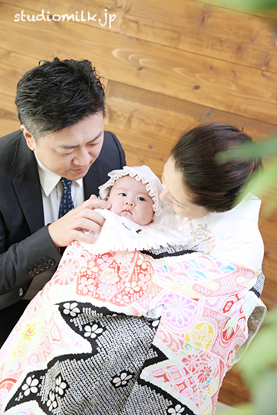 【朝フォト!】お宮参り記念に。お祝い着でご家族フォト。