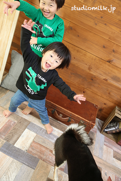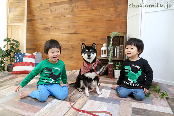 ワンちゃんも2人の女の子のお兄ちゃん、妹2人をしっかり守ってね♡