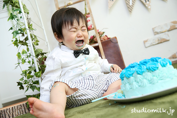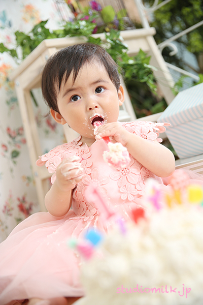 【朝フォト!】1歳の記念に、スマッシュケーキフォト♪