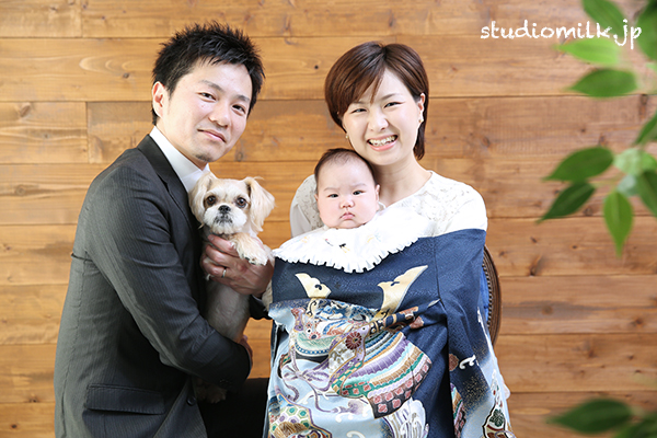 【朝フォト!】お宮参り記念に!ワンちゃんも一緒にご家族で!