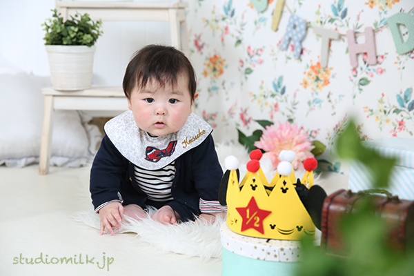 【朝フォト!】ハーフバースデーの記念に!かしこまりすぎずに気軽に撮れるスタジオです♪