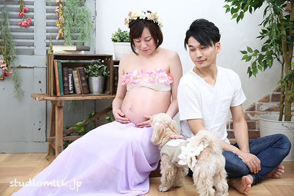 今しか撮れない、マタニティフォトはスタジオミルクで。【ペットのワンちゃんと撮影!】