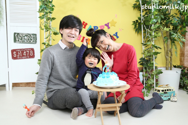 2歳男の子のスマッシュケーキフォト撮影です(^^)b