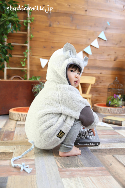 2歳くんもグレーメインの格好でムーミンパーカー!