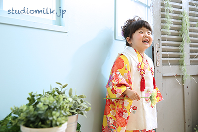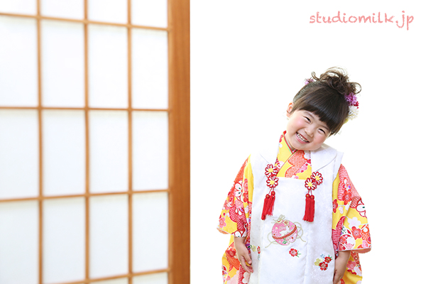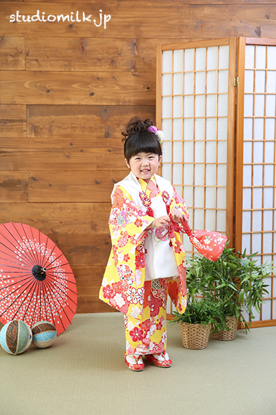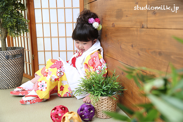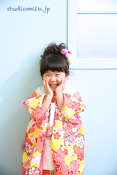 お着物は可愛いポップな黄色のお着物を選んでくれました♪