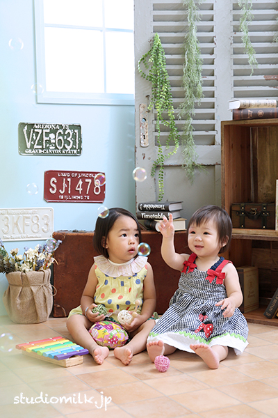 遊びに来てくれた、1歳と2歳の女の子のお写真です(^^)