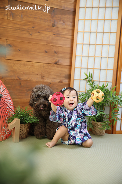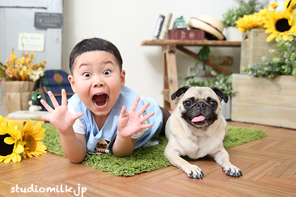 スタジオミルクでは、ペットちゃんと一緒の撮影やペットちゃんのみの撮影もOKです!