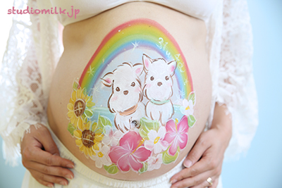 【朝フォト!】マタニティフォトとマタニティペイントで安産祈願!